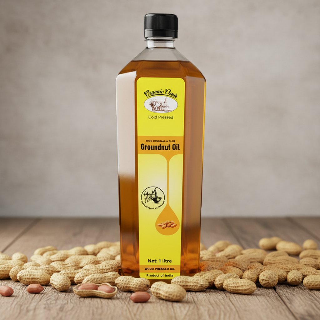 Oraganic Oasis Peanut Oil | Cold-pressed Kachi Ghani | Pure & Natural | Lab-tested Coconut Oil Plastic Bottle (0.5-1 L)