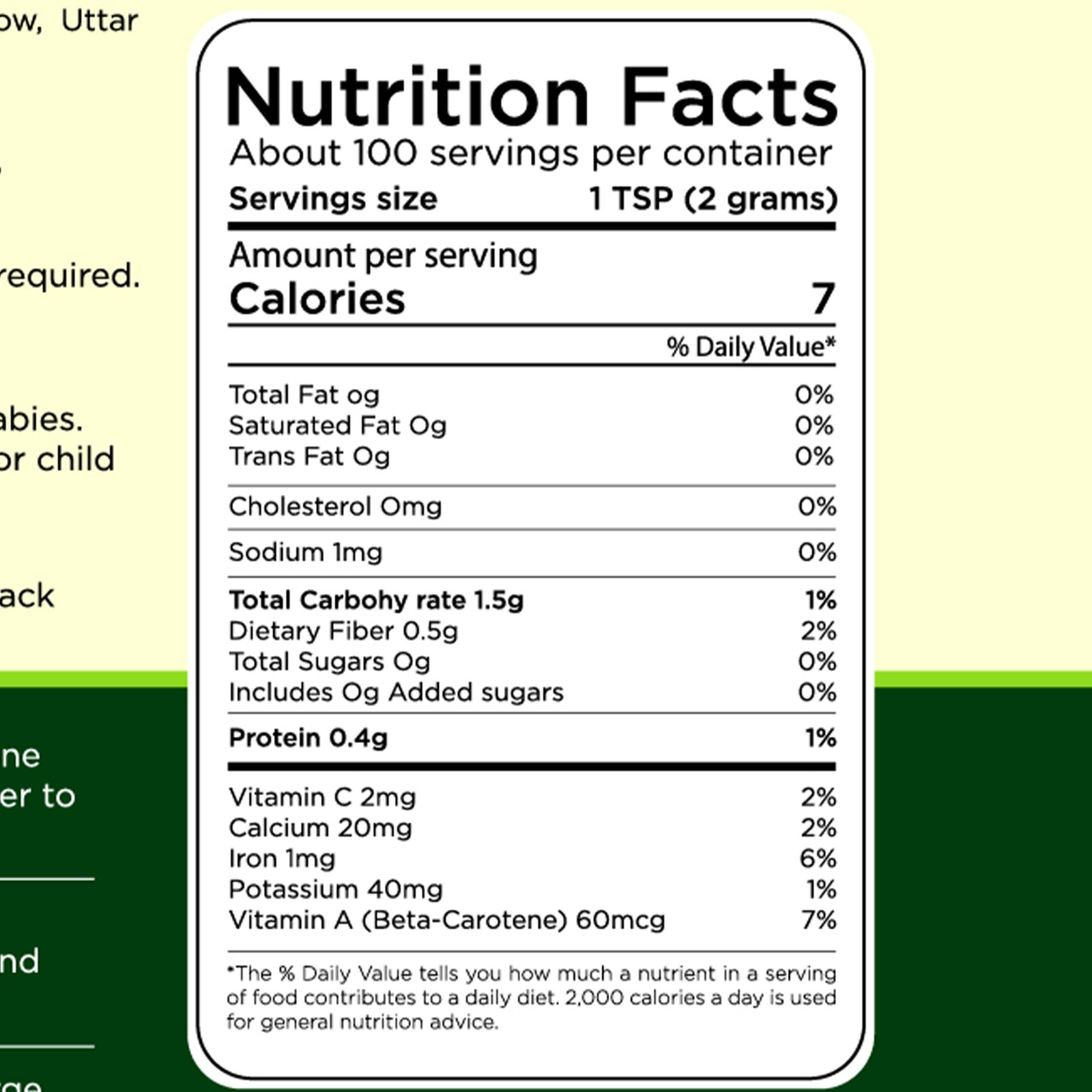 Orgnaic Oasis Tulsi Leaf Powder is made from 100% pure, naturally dried Tulsi leaves. Tulsi is packed with essential vitamins, minerals, and antioxidants that help support overall health and wellness. Sourced from the nutrient-rich soil of India, this green powerhouse is finely ground to preserve its natural goodness and deliver maximum nutrition in every spoonful.
